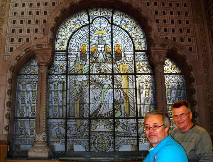 Bleiverglasung als Erbe des Reichs Karls des Großen darstellt, für das